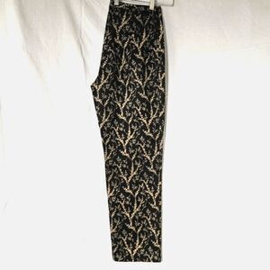 Ann Taylor Black & Taupe Floral Vine Print Fully Lined Dressy Cropped Pants