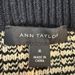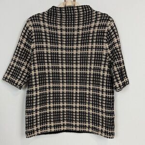 Ann Taylor Black Taupe Gold Knit Mock Neck Short Sleeve Sweater M