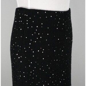 Ann Taylor Black Textured Wool Blend Silver Metallic Sequin Skirt Size 2