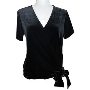 Ann Taylor Black Velvet Wrap Top Size Small