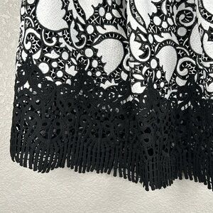 Ann Taylor Black & White Embroidered Floral Midi Circle Skirt Size 2P