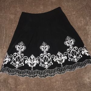 Ann Taylor Black & White Midi Fit & Flare Embroidered Skirt | Size 4P