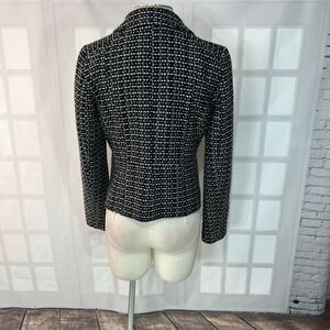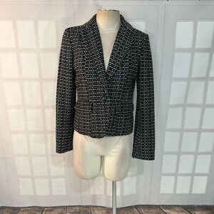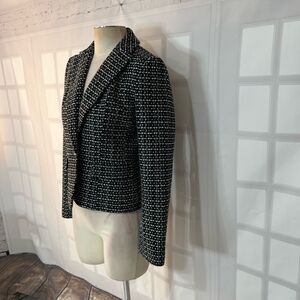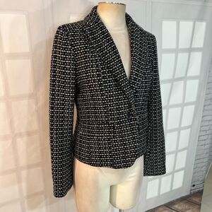 Ann Taylor Black White One Button Shawl Lapel Lined Tweed Blazer Size 6