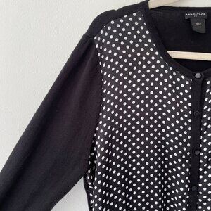Ann Taylor Black & White Polka Dot Button-Down Cardigan Womens L Office Casual