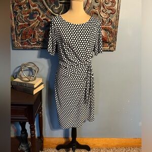 Ann Taylor Black & White Soft Drapy Faux Wrap Dress, size M