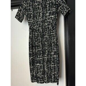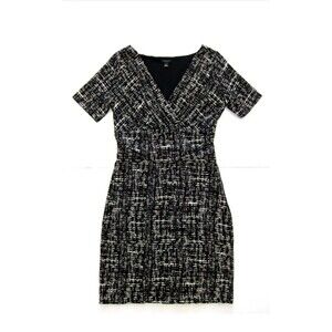 Ann Taylor Black White Stretch V-Neck Short Sleeve Empire Sheath Dress Size 00P