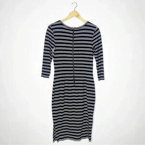 Ann Taylor Black White Stripe Dress MIDI Size Small