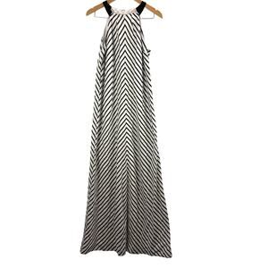 Ann Taylor Black White Stripe Halter Sleeveless Chevron Straight Maxi Dress 8T