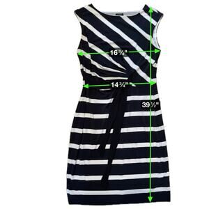 Ann Taylor Black White Striped Belted Sheath Dress Medium Work Cocktail