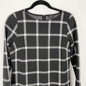 Ann Taylor Black White Window Pane Pattern LS Knit Sheath Dress Women Petite MP