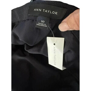 Ann Taylor Black Wool Blend Pinstripe High Waist A-Line Flared Skirt Size 10 NWT