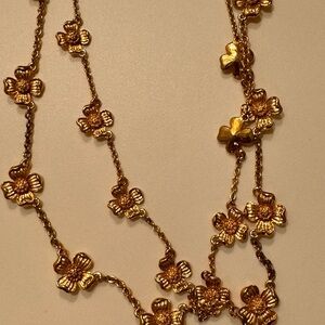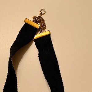This Ann Taylor necklace features a sleek black ribbon necklace adorned with gold-toned star connectors, creating a modern and minimalist look. The contrast between the black and gold elements adds a touch of elegance, making it suitable for both casual and dressy occasions.