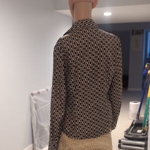 Ann Taylor Black and White Fitted Blouse with Notched Collar