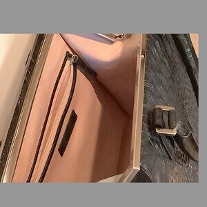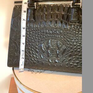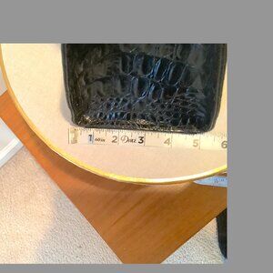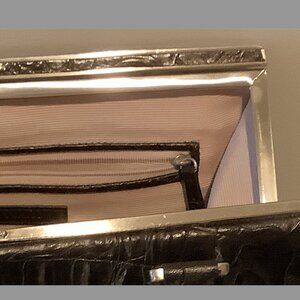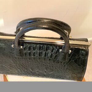 Ann Taylor Black embossed crocodile leather top handle, framed satchel bag