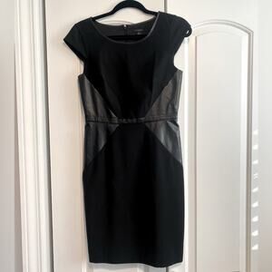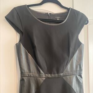 Ann Taylor Black with Faux Leather Waist Detail Shift Dress Cap Sleeve size 0