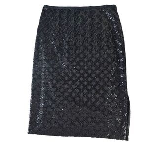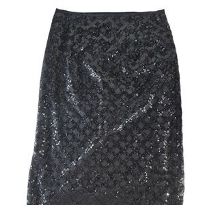 Ann Taylor Black Sequin Pencil Skirt with Slit