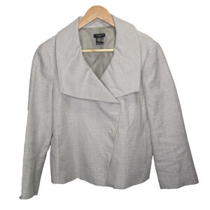 Ann Taylor Blazer Size 6 Small Linen Blend Gray Tweed Lightweight Career Jacket