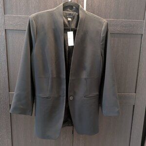 Ann Taylor Blazer The Long Collarless in Fluid Crepe Black Size 10