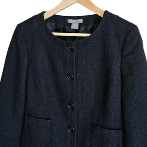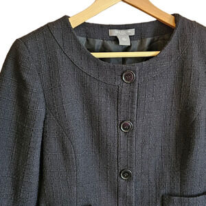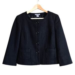 Ann Taylor Blazer Tweed Button Down Scoop Neck Black Women's 12 Petite