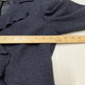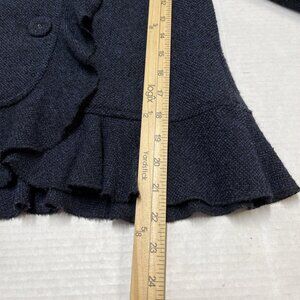 Ann Taylor Blazer Women 2 Navy Blue Boucel Knit Ruffle Suit Jacket Office Career