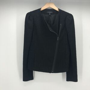 Ann Taylor Blazer Womens 8 Black Textured Fabric Moto Zip Front Pockets Modern