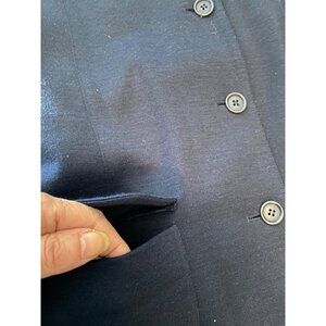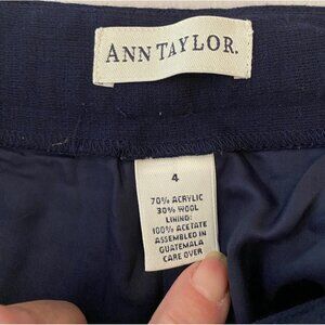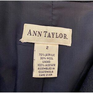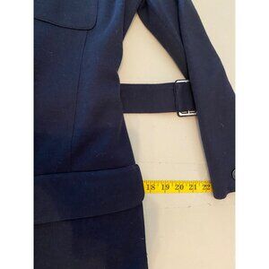 This Ann Taylor blazer and pants set features a sophisticated design suitable for professional settings. Constructed from a wool blend, it offers comfort and style, with a belted blazer and buttoned pants that enhance the elegant silhouette. The navy color provides a versatile and timeless look.