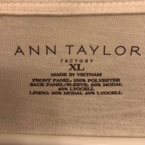 Cream in color. Front panel is 100% polyester. Back panel and sleeves are 60% modal and 40% Lyocell. Excellent like new condition.