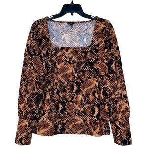 Ann Taylor Blouse Balloon Sleeve Snake Skin Square Neck Cobra
