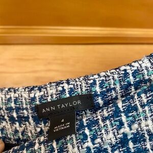Ann Taylor Blue Tweed Blouse. Long sleeve quarter sleeve. Side Zipper. Size 4 Women’s. Great condition. Perfect for work or the office. Dress classy top.