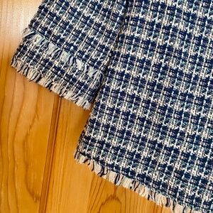 Ann Taylor Blouse Blue Tweed Plaid Fringe Size 4 Long Sleeve Work Top