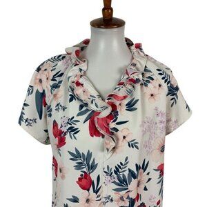 Ann Taylor Blouse Medium Floral Short Sleeve Career Workwear Chic