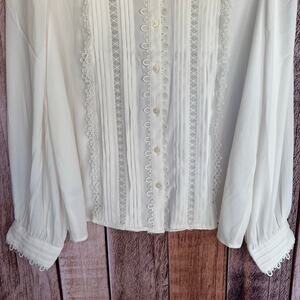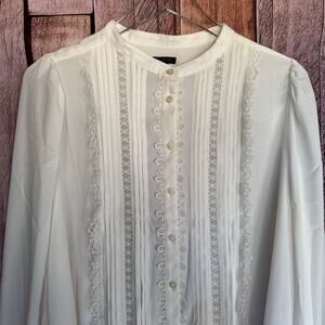Ann Taylor Blouse Petite Lace Trim Pintuck Feminine Romantic Workwear Top XLP