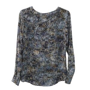 Ann Taylor Blouse Size 2 Semisheer Abstract Fall Colors Brown Blue Long Sleeve