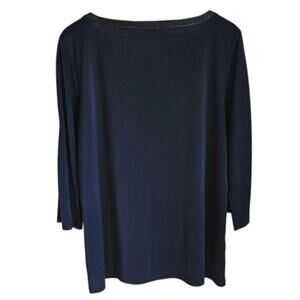 Ann Taylor Blouse Synthetic Black Leather Accents 3/4 Sleeve Navy Women's XLarge