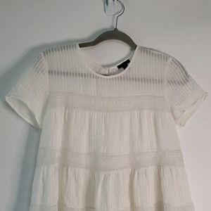 Ann Taylor Blouse Top XXS Cottage Minimalist Prairie Victorian Short Sleeves