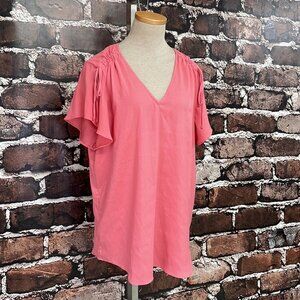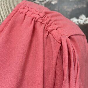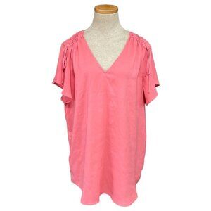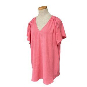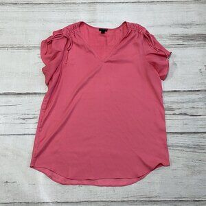 Ann Taylor Blouse V-Neck Synched Shoulders Bubble Gum Pink Size Large L