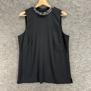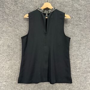 Ann Taylor Blouse Women L Large Black Rhinestone Sleeveless Wide Strap Zipper