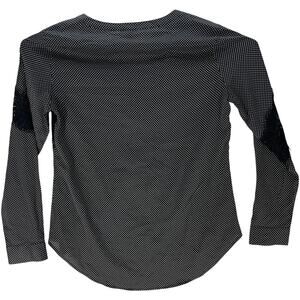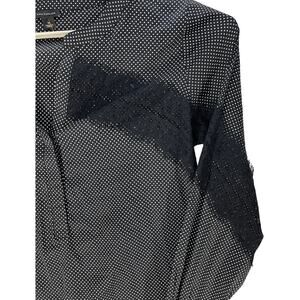 Ann Taylor Blouse Women Size M Black White Polka Dots Lace Detail Long Sleeves