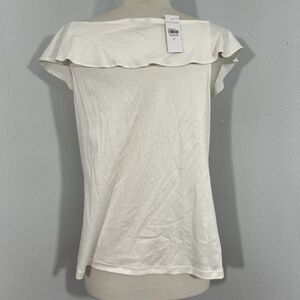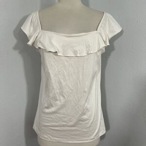 Ann Taylor Blouse Womens Medium Ivory Ruffle