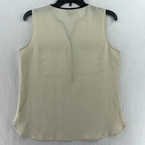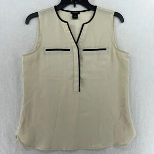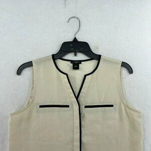 Ann Taylor Blouse Womens SP Beige Black Lightweight Sleeveless Contrast Trim