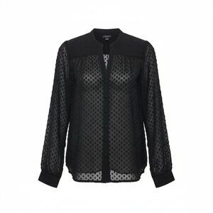 Ann Taylor Blouse Womens Small Black Sheer Swiss Dot Button Up Whimsigoth Top