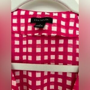 Ann Taylor Blouse with Flutter Sleeves Pink White Size 8