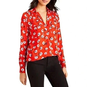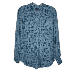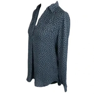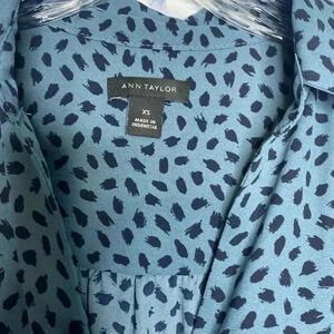 Ann Taylor Blue Animal Print Poppy Long-sleeve Blouse Top