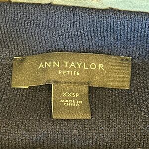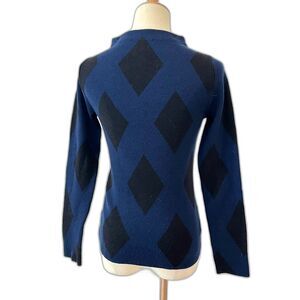 Ann Taylor Blue Black Argyle Sweater Mock Neck Diamonds XXSP Wool Blend