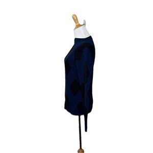 Ann Taylor Blue Black Diamond Mock Neck Long Sleeve Acrylic Sweater Womens XS