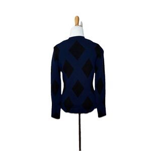 Ann Taylor Blue Black Diamond Mock Neck Long Sleeve Acrylic Sweater Women's XS. In good conditon. 26 % acrylic / 24 % wool 18 % nylon / 17 % cotton / 15 % rayon.