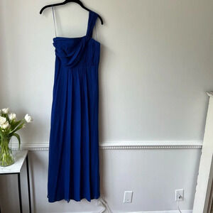 Ann Taylor Blue Silk Georgette One Shoulder Gown