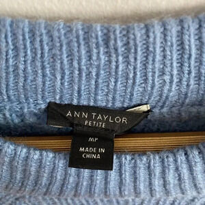 Ann Taylor Blue Wool Blend Balloon Sleeve Sweater Dress