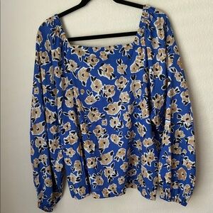 This elegant Ann Taylor blouse features a striking blue and white color palette with a square neckline and long puff sleeves. The blouse's sophisticated design is perfect for adding a touch of style to any outfit, while its lightweight fabric ensures comfort throughout the day.