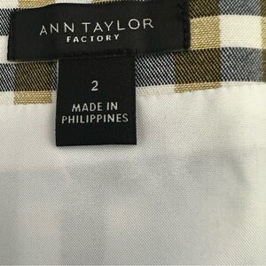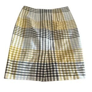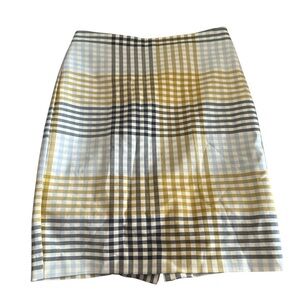 This Ann Taylor skirt features a chic pencil style in a vibrant blue and yellow color palette. Designed for both work and casual settings, its mini length adds a modern touch to your wardrobe. The structured fabric ensures a polished and tailored fit, making it a versatile addition to any outfit.